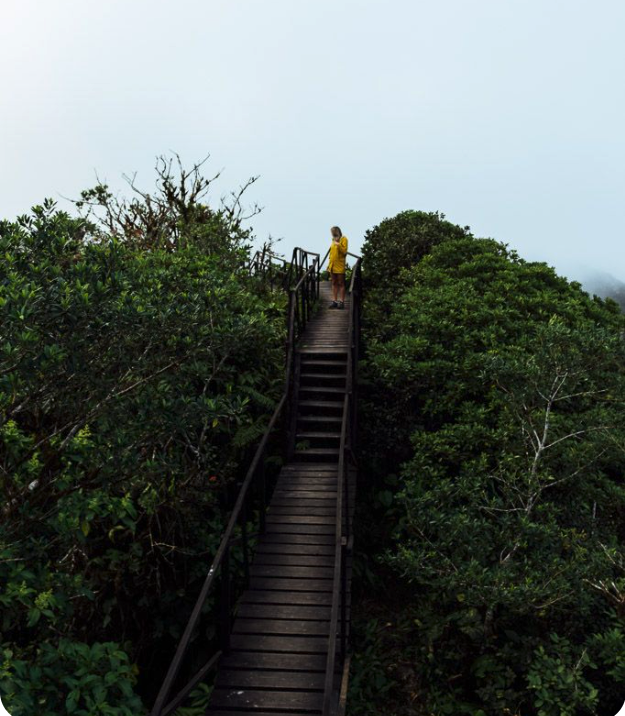 Cerro La Gaita es uno de los puntos de interés con los que cuenta Altos del María, un residencial privado cerca de Sorá. Esto significa que para acceder a él tienes tres opciones: ser propietario de un inmueble, conocer a alguien que tenga una propiedad o alquilar una estancia para los días que quieras visitar la zona. El sendero está bien indicado en todo momento y no tiene pérdida, ya que después de la subida inicial empiezan las escaleras que te llevarán a la cima. El trayecto transcurre mayoritariamente por debajo de inmensos árboles, hasta que por fin, llegas a la parte más bonita del sendero, y por la que seguramente quieres visitar Cerro La Gaita: la famosa pasarela de madera con vistas privilegiadas.